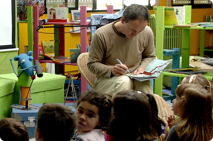 O poeta Carlos Fontes veu pasar con nós a tarde e compartir unhas lecturas dos seus libros: Poemas con piruleta e Versos en flor.